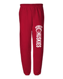 Hewitt Huskies NuBlend® Sweatpants - 973BR - Red w/ Logo down Leg.