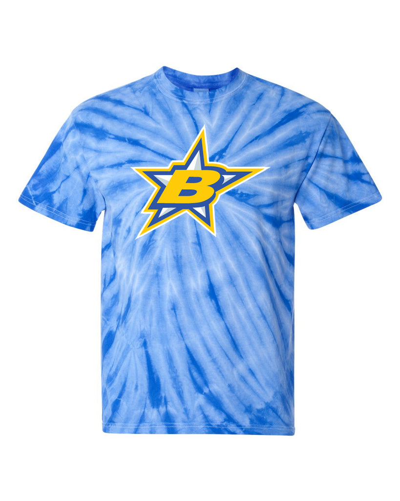 Butler Stars Royal Cyclone Tye Dye Short Sleeve Tee w/ Large 2 Color Logo on Front.