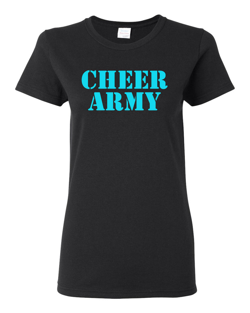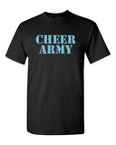 Cheer Army Black Short Sleeve Tee w/ Columbia Blue CHEER ARMY Stencil Logo on Front.