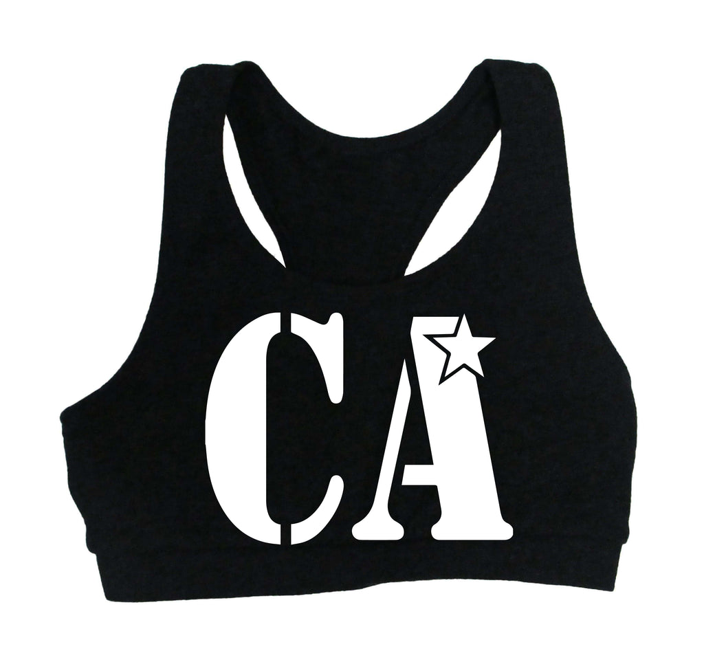 Cheer Army Black Sports Bra w/ White CA Logo on Front.
