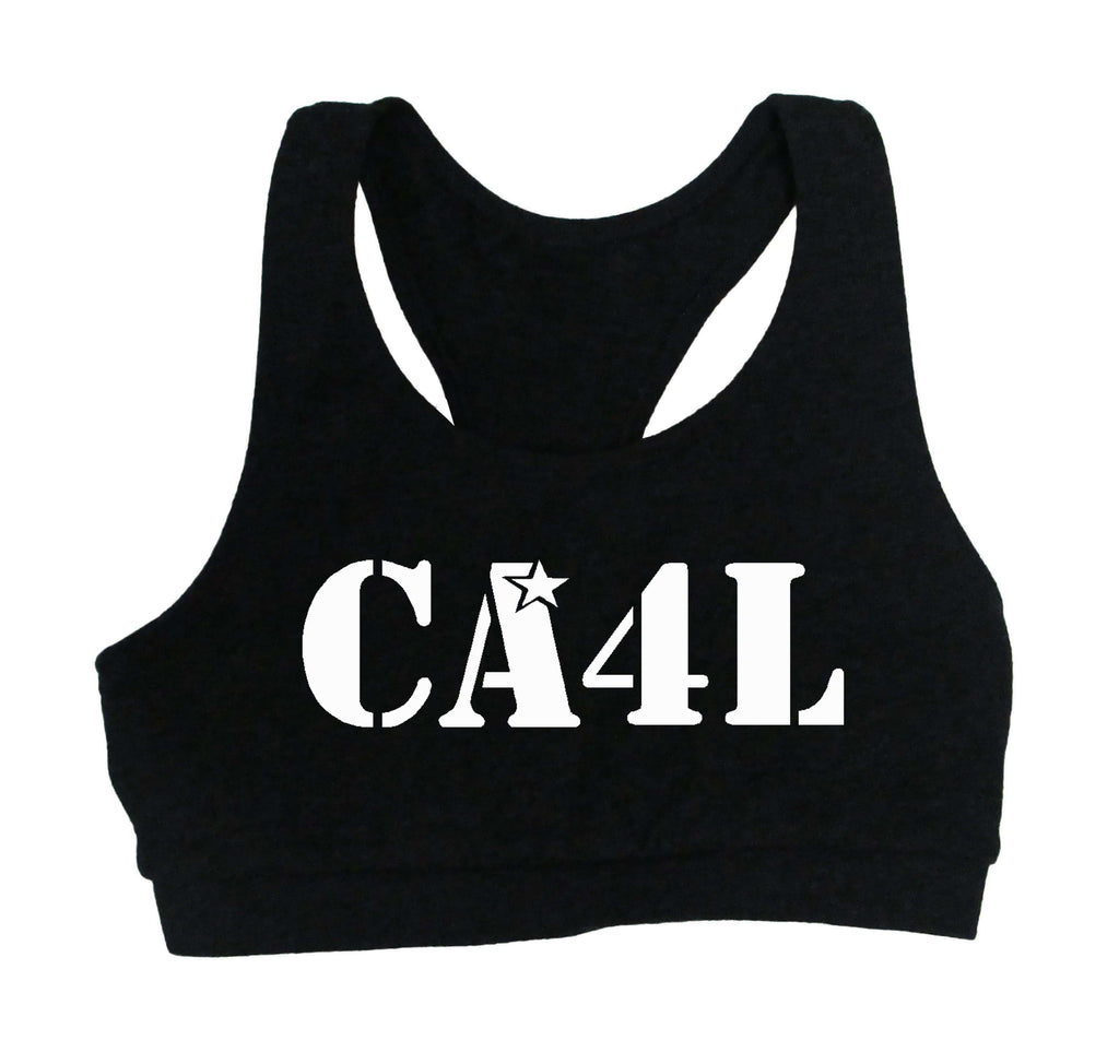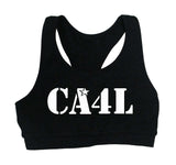 Cheer Army Black Sports Bra w/ White CA4L Logo on Front.