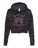 FLFA Black Camo Women’s Lightweight Cropped Hooded Sweatshirt - AFX64CRP w/ FLFA Cutters CHEER Logo in SPANGLE on Front