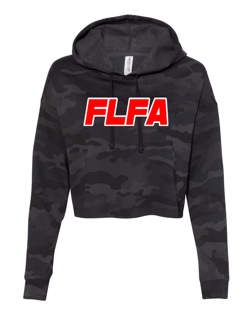FLFA Black Camo Women’s Lightweight Cropped Hooded Sweatshirt - AFX64CRP w/ FLFA (text) Logo on Front