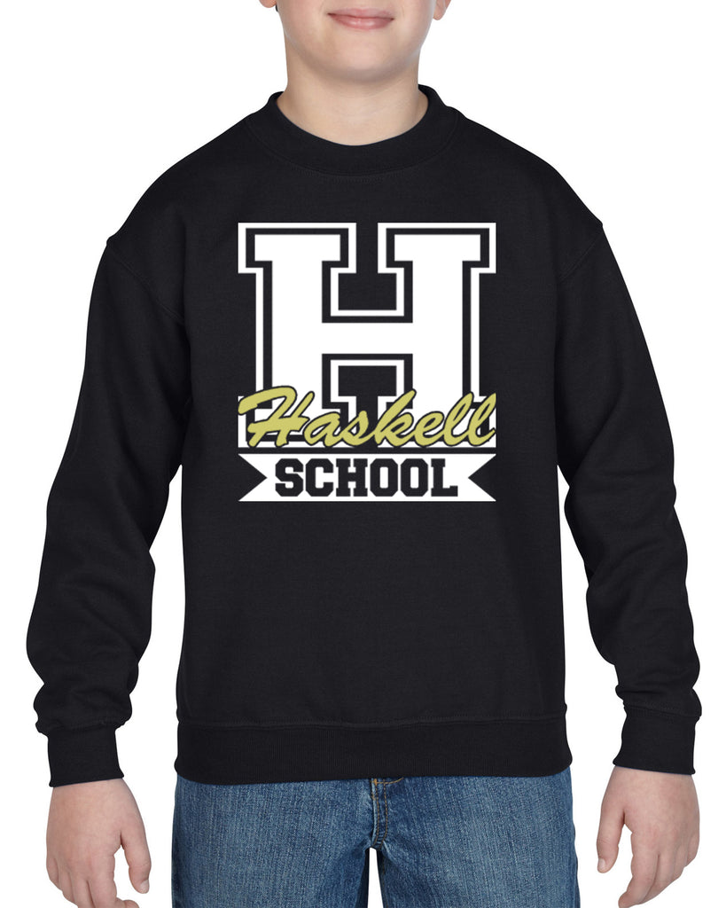 HASKELL School Black Heavy Blend Crewneck Sweatshirt w/ HASKELL School "H" Logo on Front.