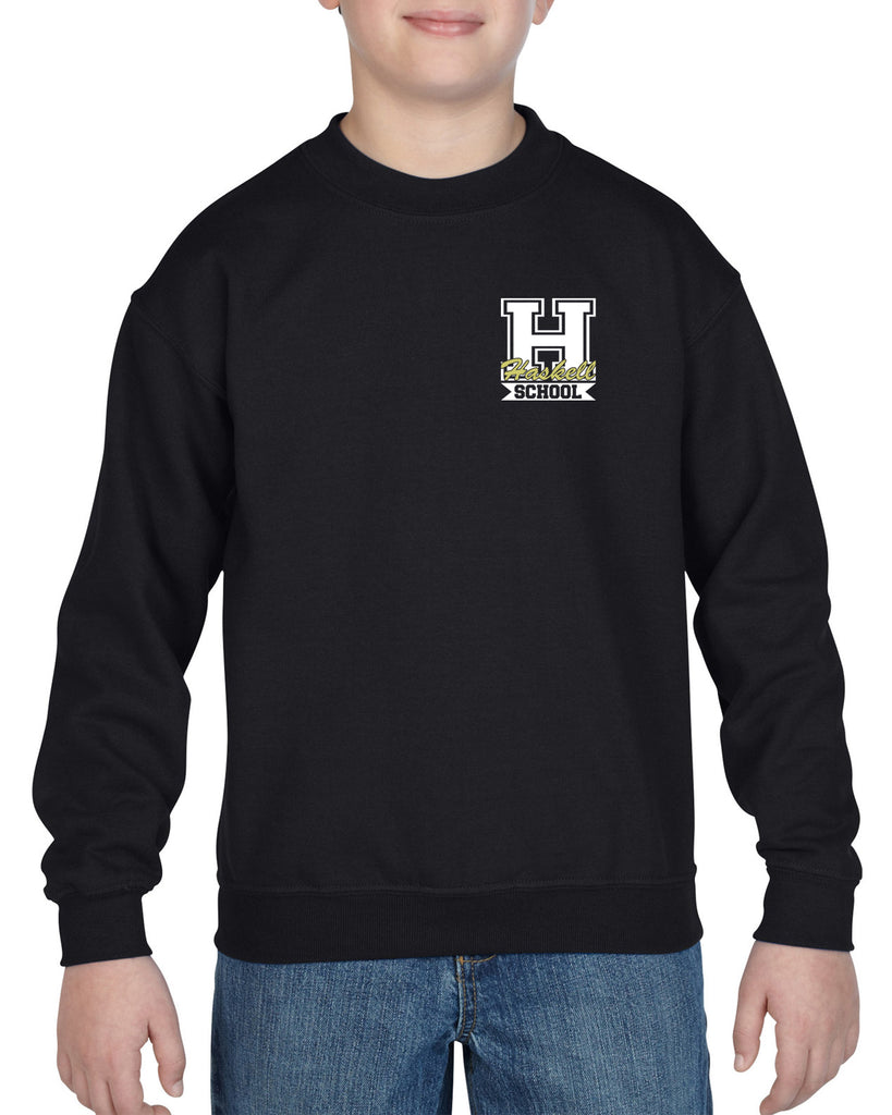 HASKELL School Black Heavy Blend Crewneck Sweatshirt w/ Small Left Chest HASKELL School "H" Logo on Front.