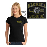 HASKELL School Black Short Sleeve Tee w/ HASKELL School "Text" in Spangle on Front & "Indian" Logo on Back. STYLE #3