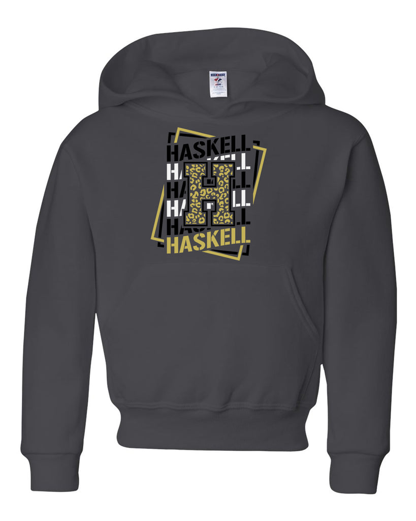 HASKELL School Charcoal Hoodie w/ Wave-Block Design on Front.
