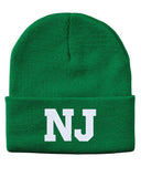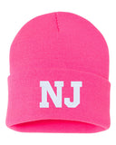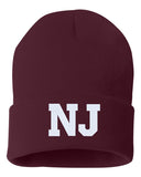 NJ State Abbreviation Embroidered Cuffed Beanie Hat