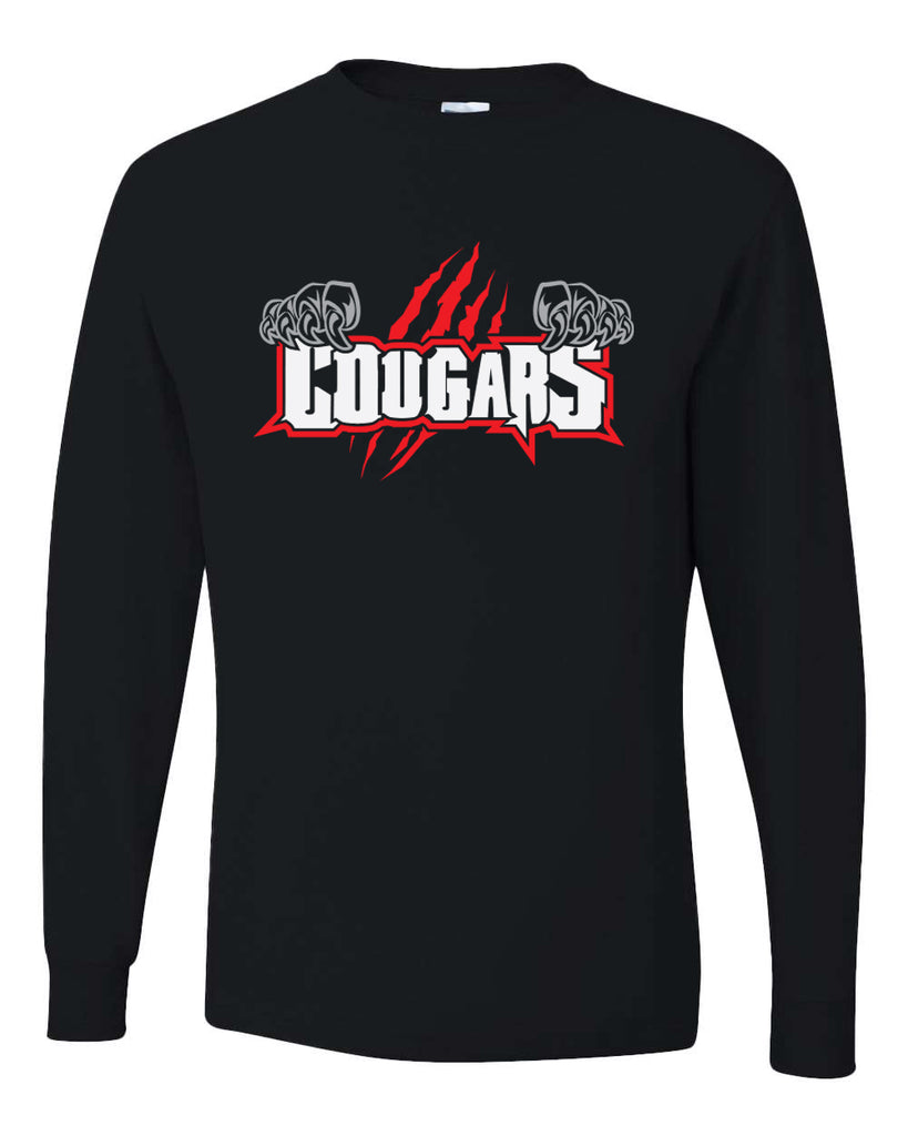 Hazleton Area Cougars - Black JERZEES - Dri-Power® Long Sleeve 50/50 T-Shirt - 29LSR w/ Cougars Slash V2 Design on Front.