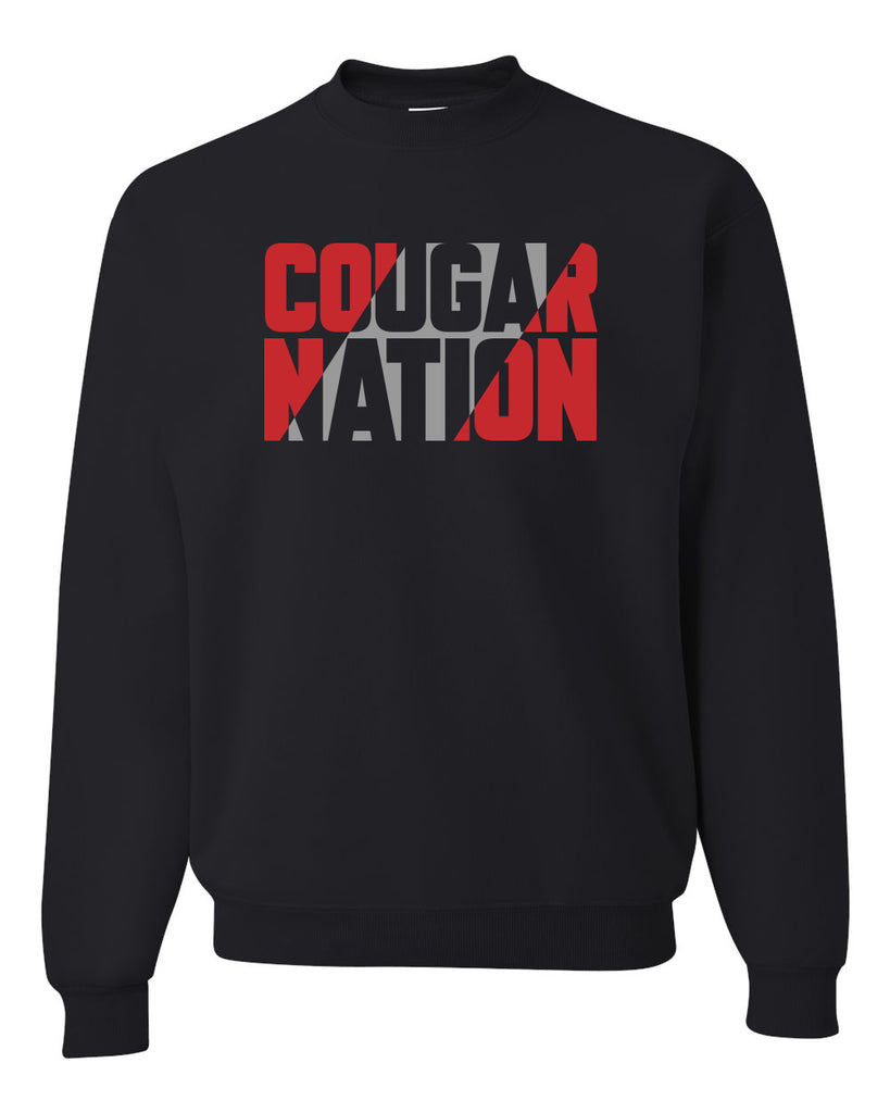 Hazleton Area Cougars - Black JERZEES - NuBlend® Crewneck Sweatshirt - 562MR w/ Cougar Nation Design on Front.