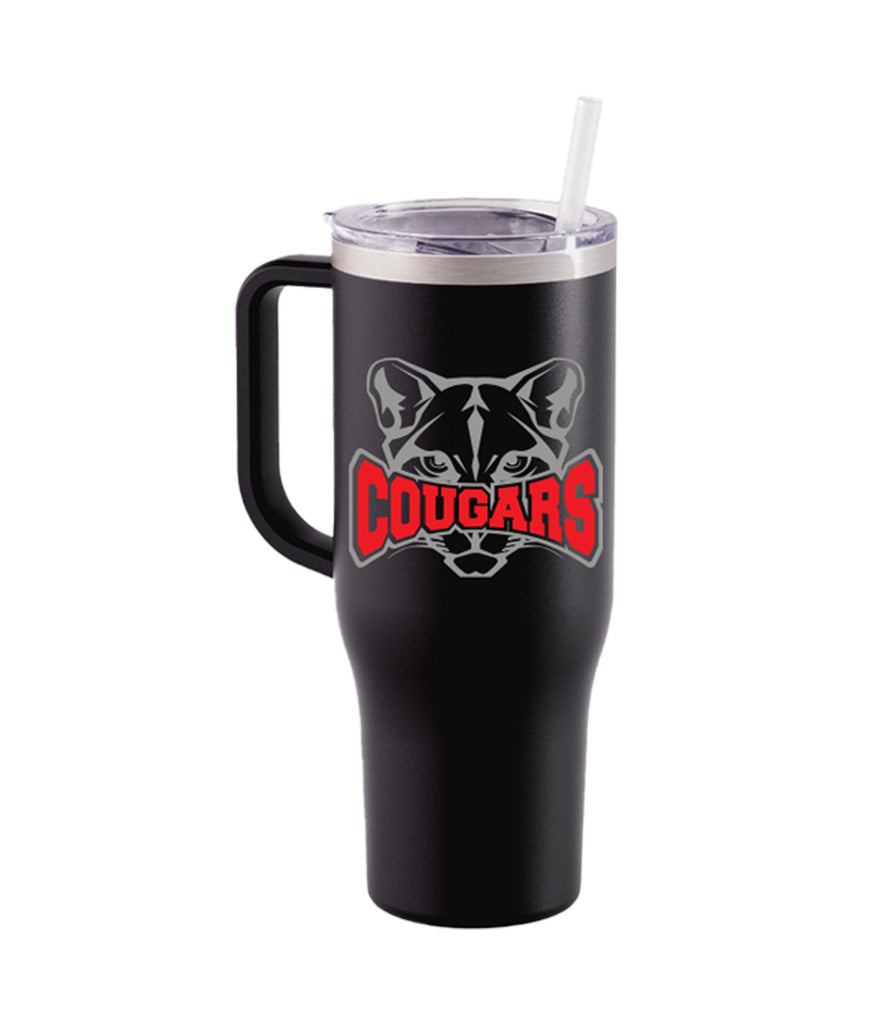 Hazleton Area Cougars Matte Black SAC 40 Oz Tumbler with Handle w/ Cougars 726 Design on Front