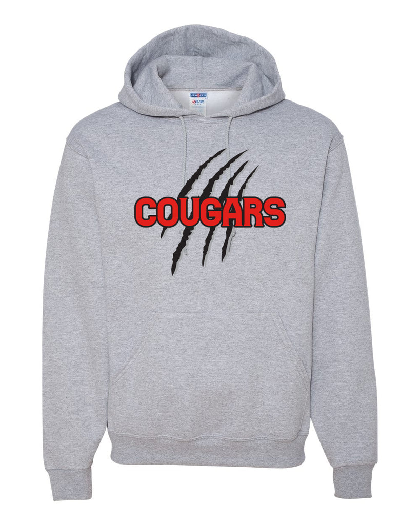 Hazleton Area Cougars - Sport Gray JERZEES - NuBlend® Hooded Sweatshirt - 996MR w/ Cougars Slash V1 Design on Front.
