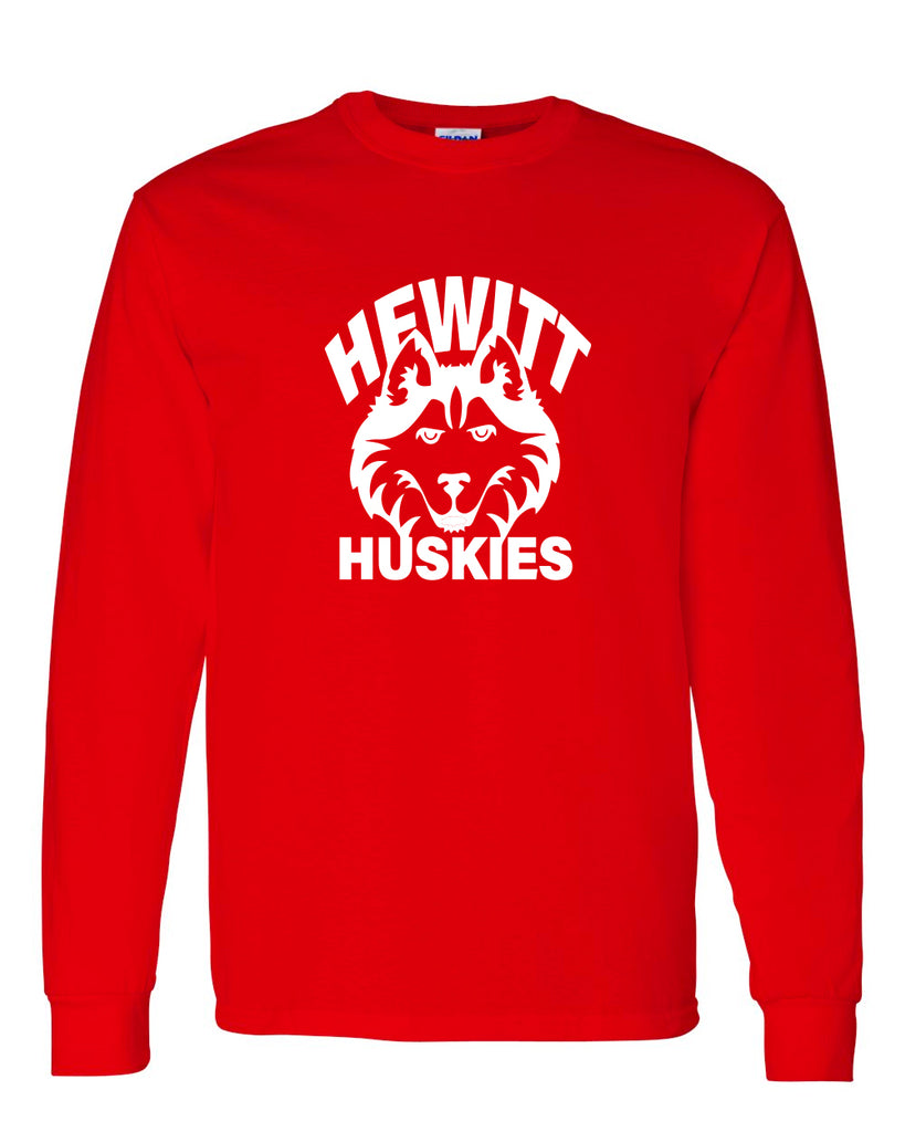Hewitt Huskies Red Long Sleeve Tee w/ Logo Design 1 on Front
