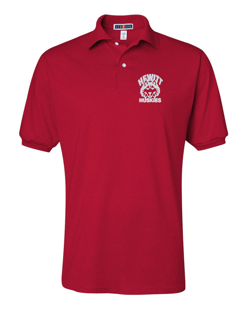 Hewitt Huskies Red Short Sleeve JERZEES - SpotShield™ 50/50 Polo Sport Shirt - 437YR - w/Logo Embroidered on Left Chest