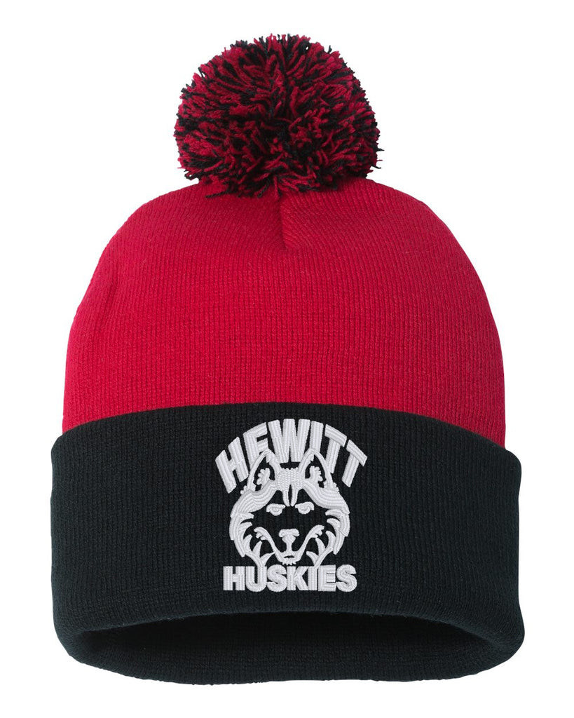 Hewitt Huskies Sportsman - Black & Red 12" POM-POM Cuffed Beanie - w/ Logo Embroidered on Front.