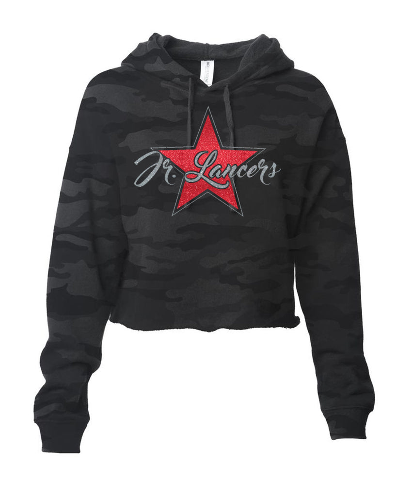 Jr Lancers Cheer - ITC Women's Lightweight Cropped Hooded Sweatshirt w/ Glitter Star Design on Front.