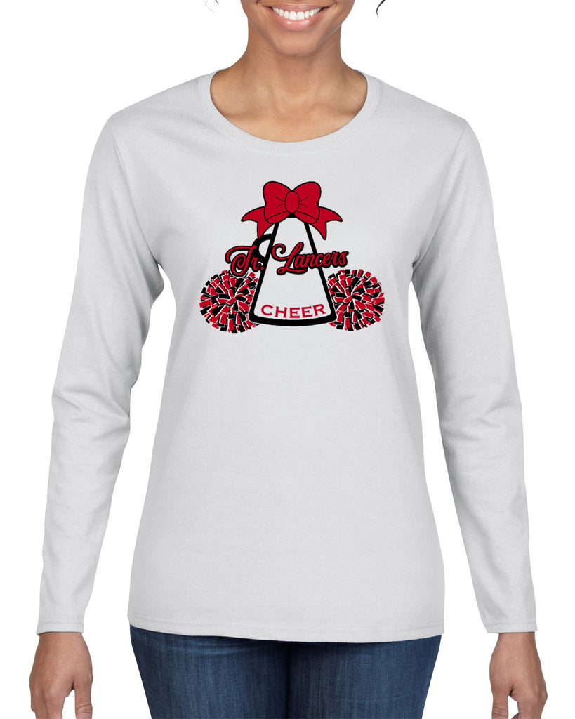 Jr Lancers Competition Cheer Heavy Cotton White Shirt w/ Mega Bow 2 Color Design on Front.