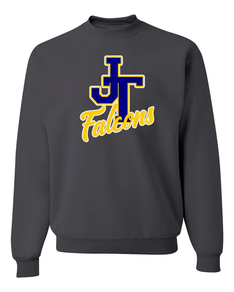 Jefferson Cheer Charcoal JERZEES - NuBlend® Crewneck Sweatshirt - 562MR w/ JT Falcons Design on Front.
