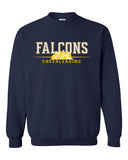 Jefferson Cheer Navy JERZEES - NuBlend® Crewneck Sweatshirt - 562MR w/ Falcons Cheerleading Design on Front.