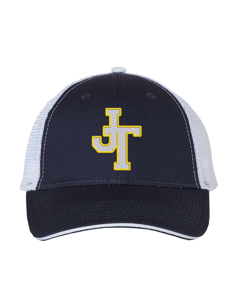 Jefferson Cheer Navy/White VC Sandwich Trucker Cap - S102 w/ JT Design Embroidered on Front.
