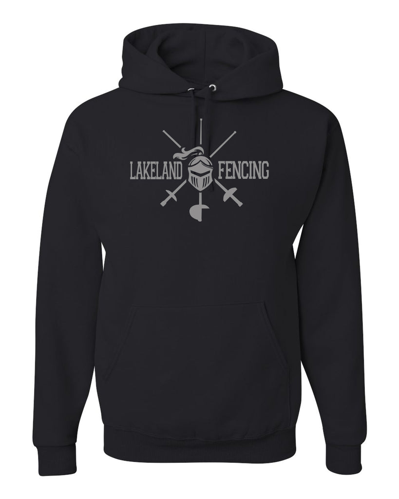 Lakeland Fencing Black 50/50 Blend Hoodie w/ Gray Design