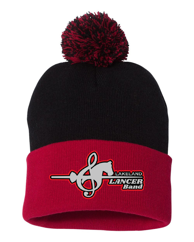 Lakeland Marching Band Pom-Pom 12" Knit Beanie - SP15 w/ LanceNote Design on Front Cuff.