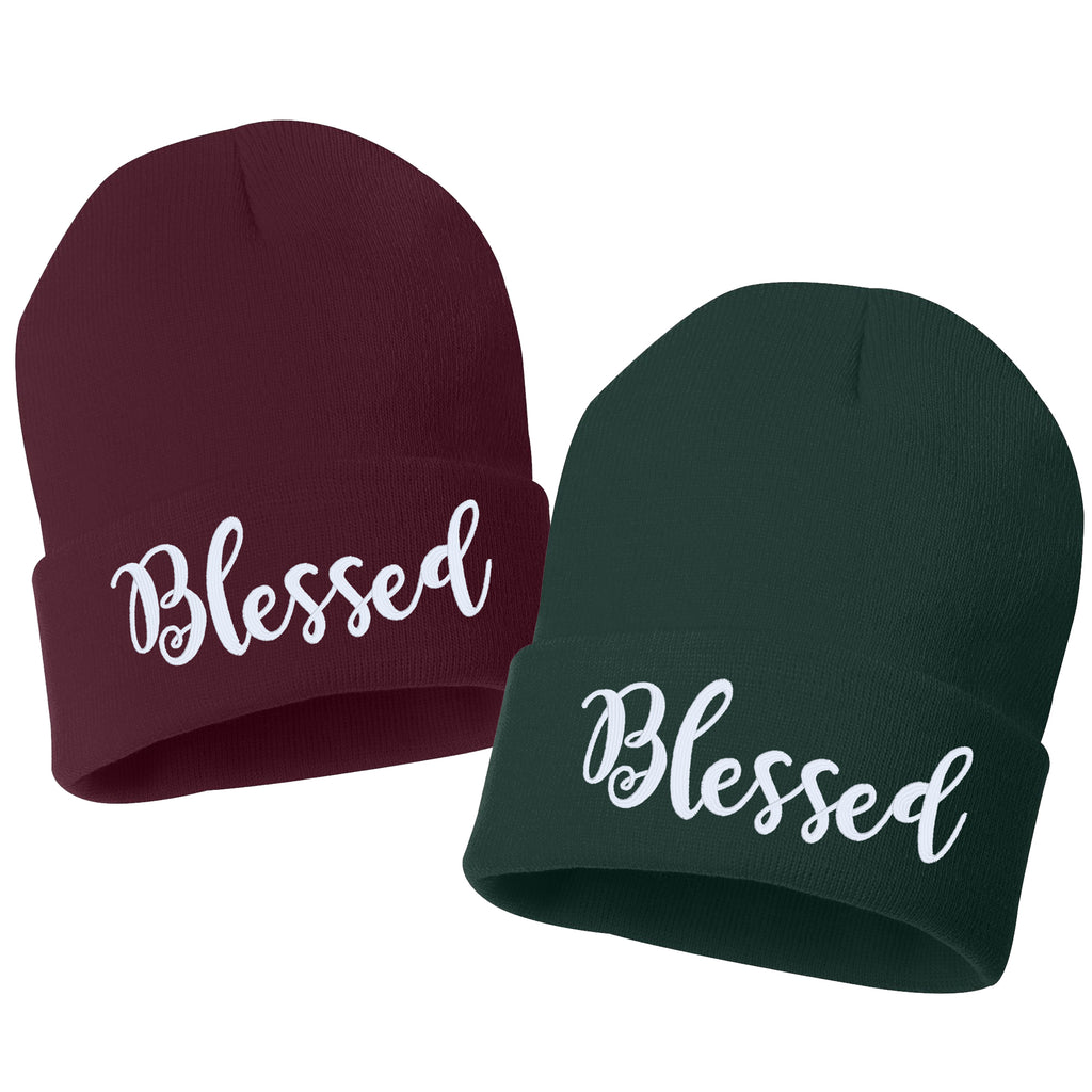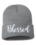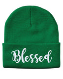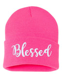 Blessed Script Embroidered Cuffed Beanie Hat