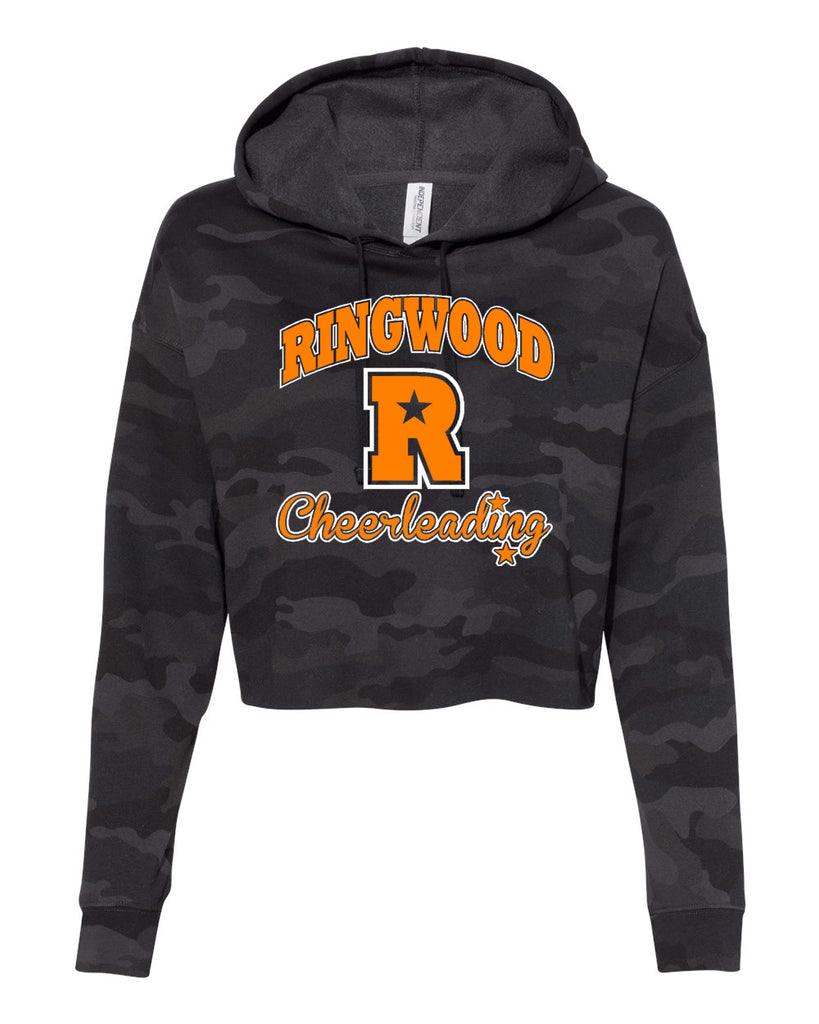 Ringwood Rattlers Black Camo ITC Women’s Lightweight Crop Hooded Sweatshirt - AFX64CRP w/ 2 Color CHEERLEADING Design on Front