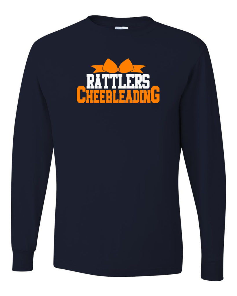Ringwood Rattlers Black JERZEES - Dri-Power® Long Sleeve 50/50 T-Shirt - 29LSR w/ 2 Color Rattlers Cheerleading Bow Design on Front