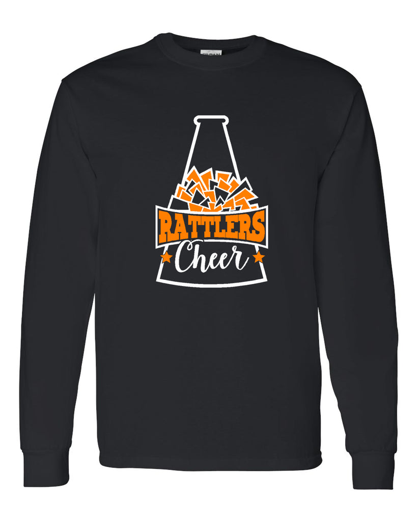 Ringwood Rattlers Black JERZEES - NuBlend® Crewneck Sweatshirt - 562MR w/ 2 Color Rattlers Cheer Megaphone Design on Front