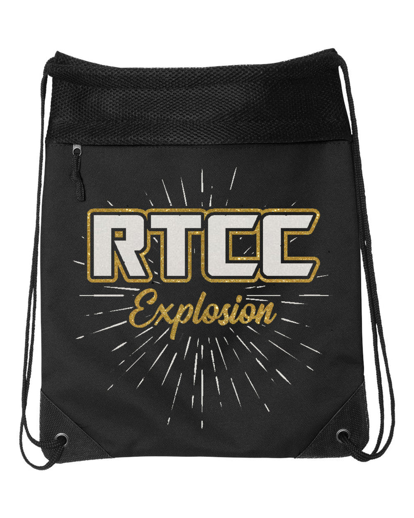 RTCC Black Coast to Coast Drawstring Backpack - 2562 w/ GLITTER Burst Design on Front.