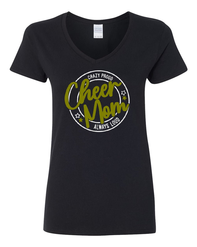 RTCC Black V-Neck T-Shirt w/ RTCC Cheer Mom 507 Design on Front.