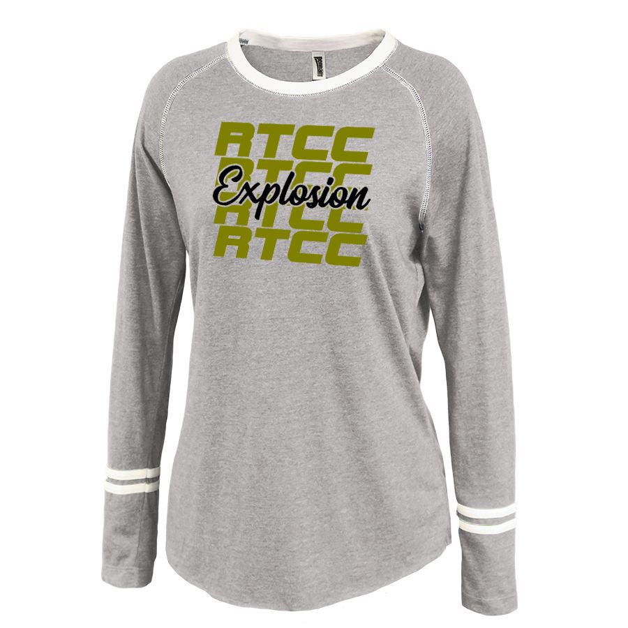 RTCC Gray Ringer Stripe Crew Shirt w/ RTCC Explosion Repeat 2 Color Design on Front.