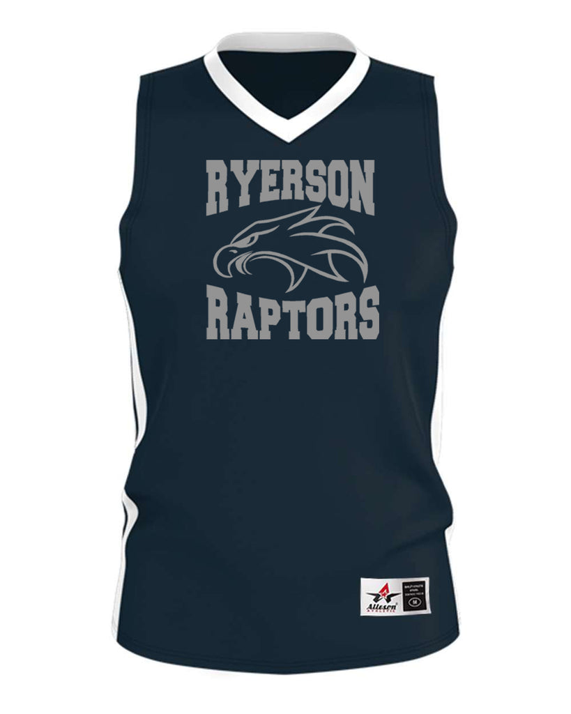 Ryerson School Navy Alleson Athletic - Single Ply Basketball Jersey - 538J w/ V1 Design on Front