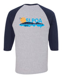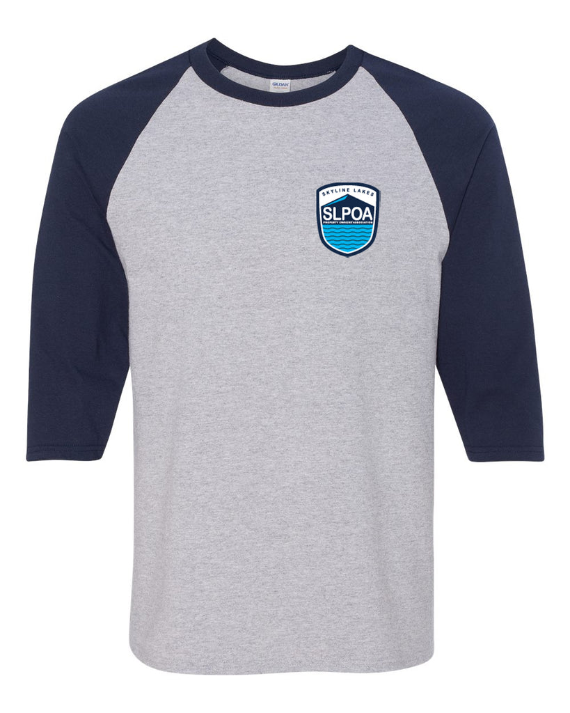 Skyline Lakes Gray/Navy Heavy Cotton™ Raglan Three-Quarter Sleeve T-Shirt - 5700 w/ Shield Logo Front & SLPOA Logo on Back