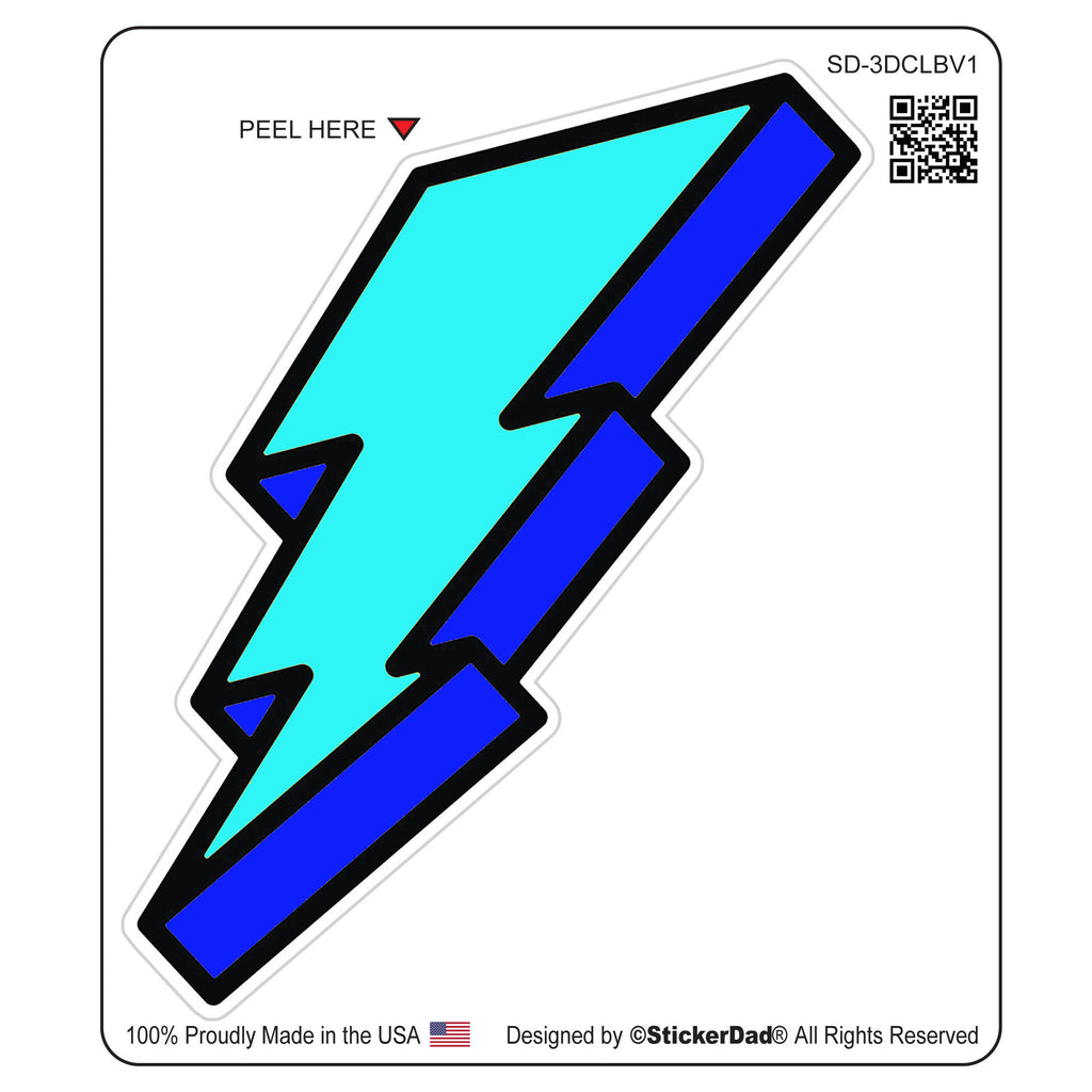 3-D CARTOON LIGHTNING BOLT V1 - Blue - 4" Full Color Printed Vinyl Decal Window Sticker
