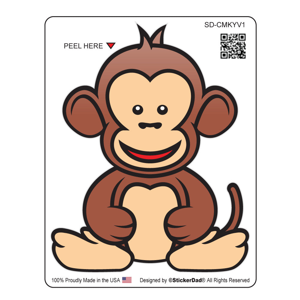 Cute Monkey V1 - 4" Full Color Printed Vinyl Decal Window Sticker