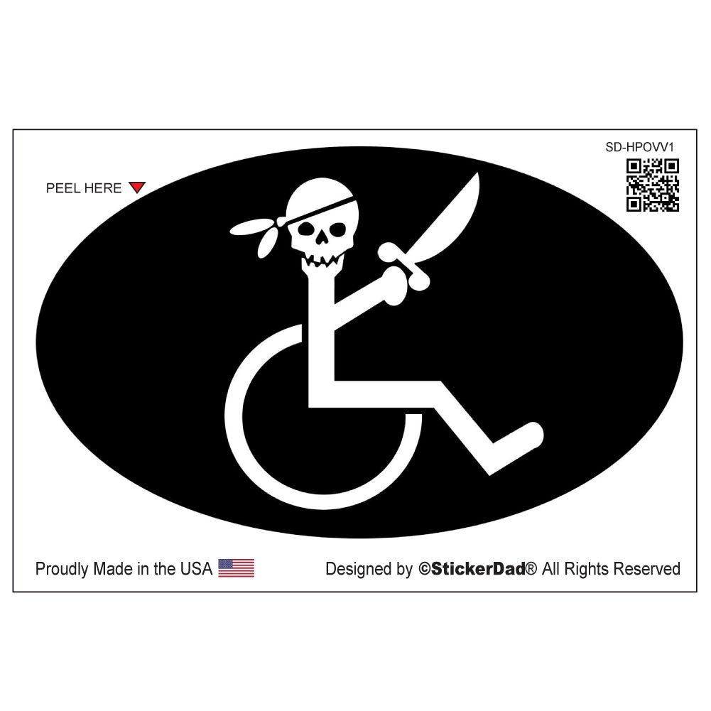 Handicapped Pirate V1 Oval Full Color Printed Vinyl Decal Window Sticker