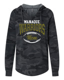 Wanaque Warriors Football Women’s Lightweight California Wave Wash Hooded Sweatshirt - PRM2500 w/ White & Vegas Gold Warriors Football Mom Design