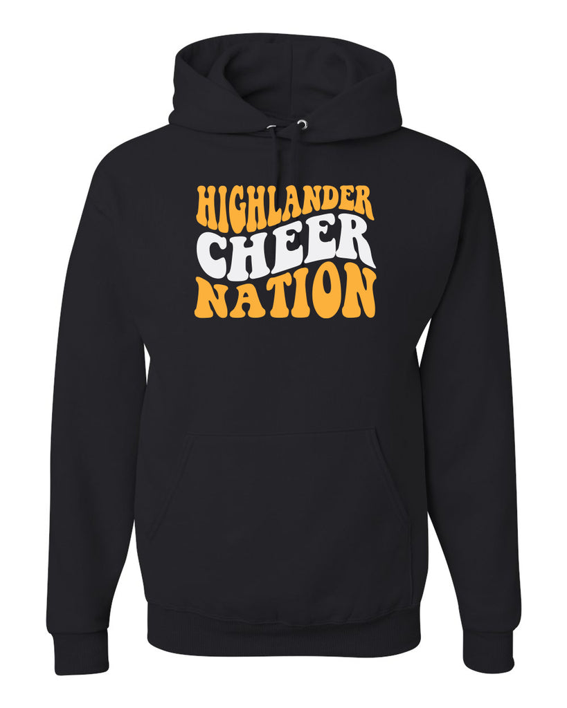 West Milford Cheerleading - Black Hoodie w/ Highlander Cheer Nation Design on Front.