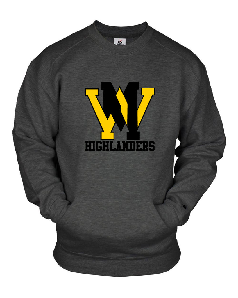 West Milford Cheerleading - Charcoal - Badger 1252 Pocket Sweatshirt w/ WM Highlanders Logo on Front.