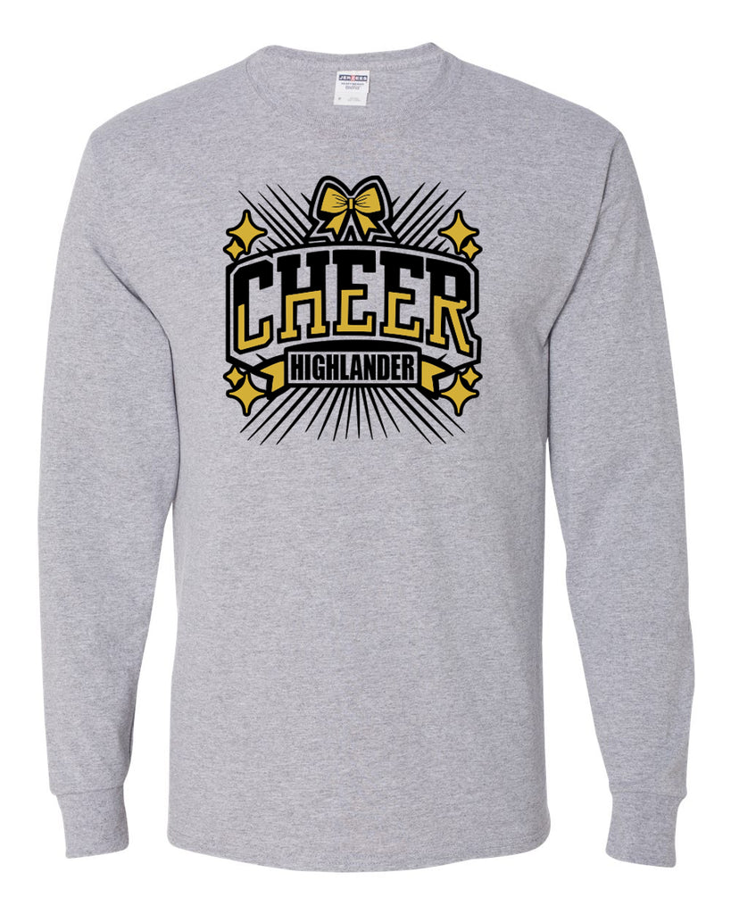 West Milford Cheerleading - Sport Gray Long Sleeve Tee w/ HIGHLANDER CHEER 948 Design on Front.