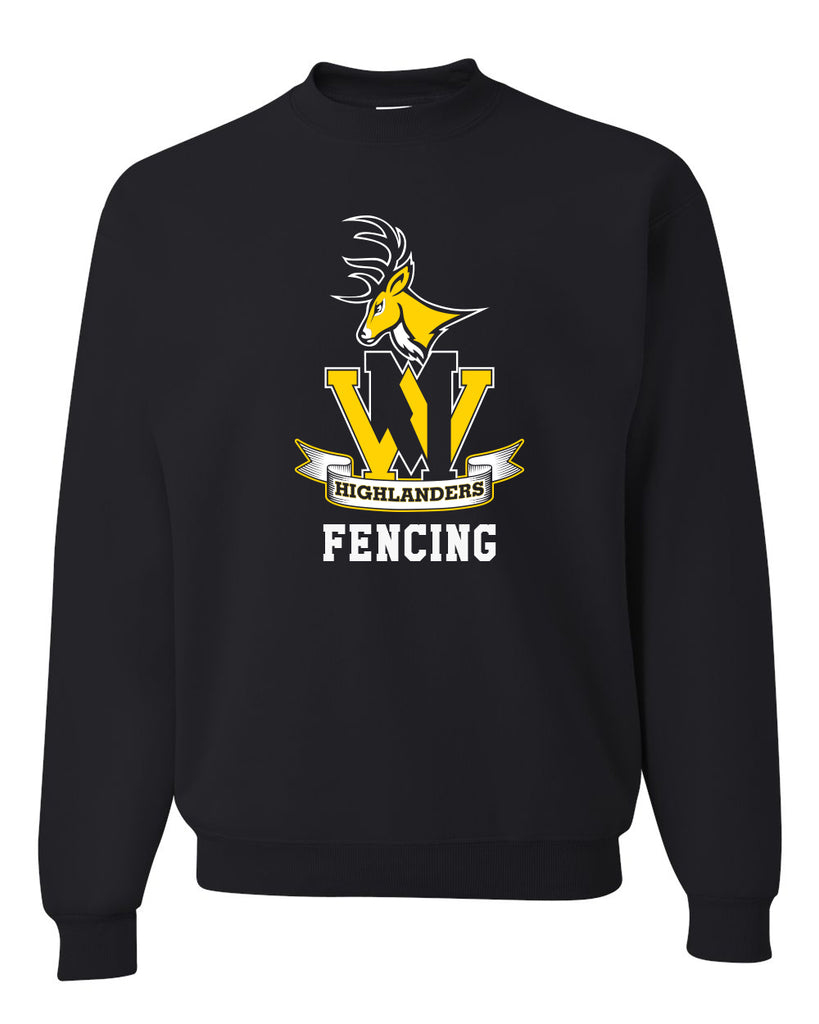 West Milford Fencing Black Crewneck Sweatshirt w/ Large Ribbon Design on Front.