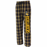 West Milford Girls Tennis Black & Gold Flannel PJ Style Pants w/ HIGHLANDERS Print down Leg.