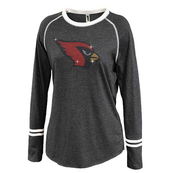 Westwood Cardinals Women's Ringer Striped Crew Long Sleeve T-Shirt - 5243 w/ Spangle Cardinal Bird Design