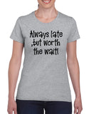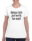Always Late, but Worth the Wait V1 Graphic Transfer Design Shirt