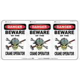 Danger Beware of the Crane Operator Minis 2.25" x 1.5" (3 pack) Hard Hat-Helmet Full Color Printed Decal