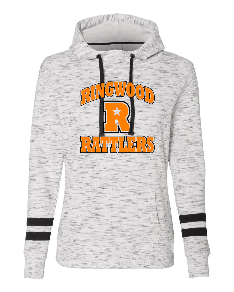 Ringwood Rattlers Black Women’s Mélange Fleece Striped-Sleeve Hooded Sweatshirt - 8674 w/ 2 Color RATTLERS Design on Front
