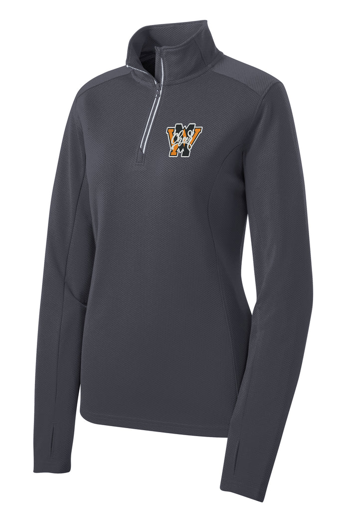 West Milford Cheerleading - Charcoal Sport-Tek® Women's Sport-Wick® Textured Quarter Zip Pullover w/ WM Cheer Design Embroidered on Left Chest
